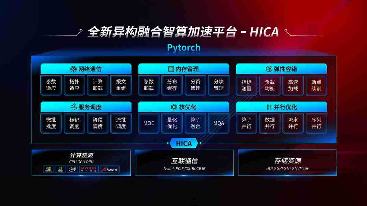 通过自研的服务层、、中间适配层、、以及调度编排算法,,采用数据并行、、、模型并行等多种并行方式,,,,把并行计算任务进行有效的分解,,,,使其分别由相应的软件栈和算力资源来承接。。。当GPU资源变化,,HICA可以实时动态调度计算子任务并调整模型拓扑和架构,,以充分聚合各种算力资源。。。。
