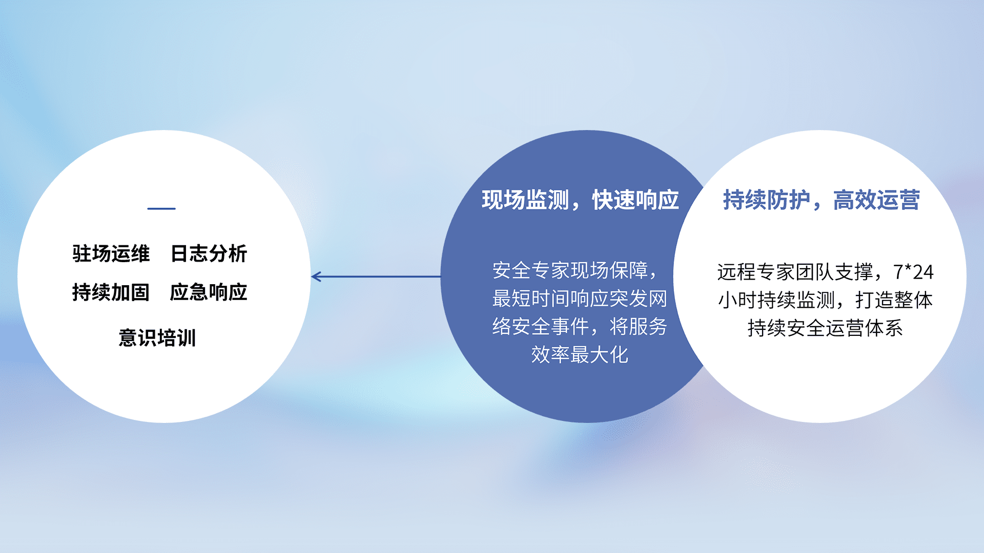 针对客户行业特性,,,,提供专属的一站式安全管理服务,,帮助客户全面感知网络空间威胁,,通过安全专家的线上、、、、线下防护支持,,实现风险闭环,,,,将安全保障常态化,,,,为客户打造常态化安全运维运营服务。。。。